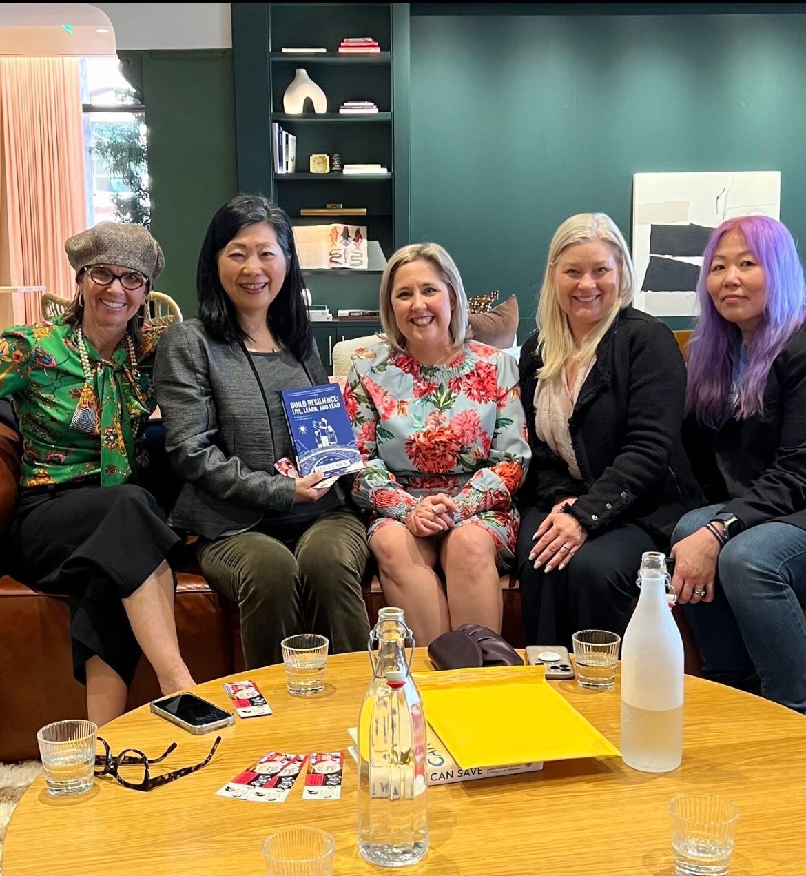 Lucy Chen(左二)与CHIEF女性高管俱乐部成员分享自己的新书。(图片来源:Lucy Chen提供)